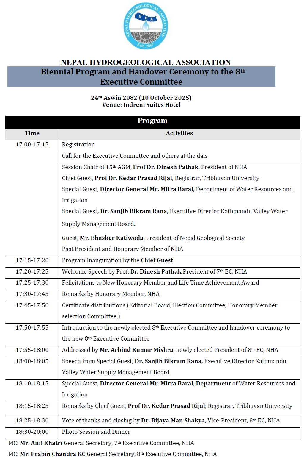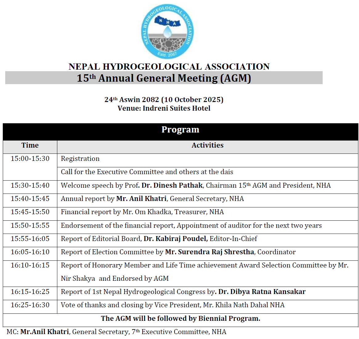 | AGM and Biennial Program of NHA 2082 |